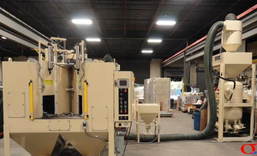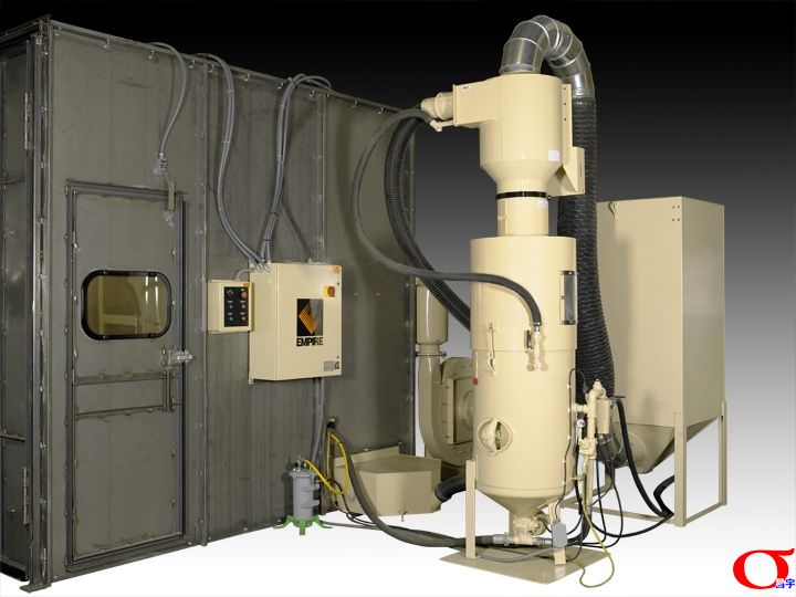 宽97”(2464 mm) ×深105” (2667 mm)的重载喷丸箱体,3/8”厚钢板,广口。 |